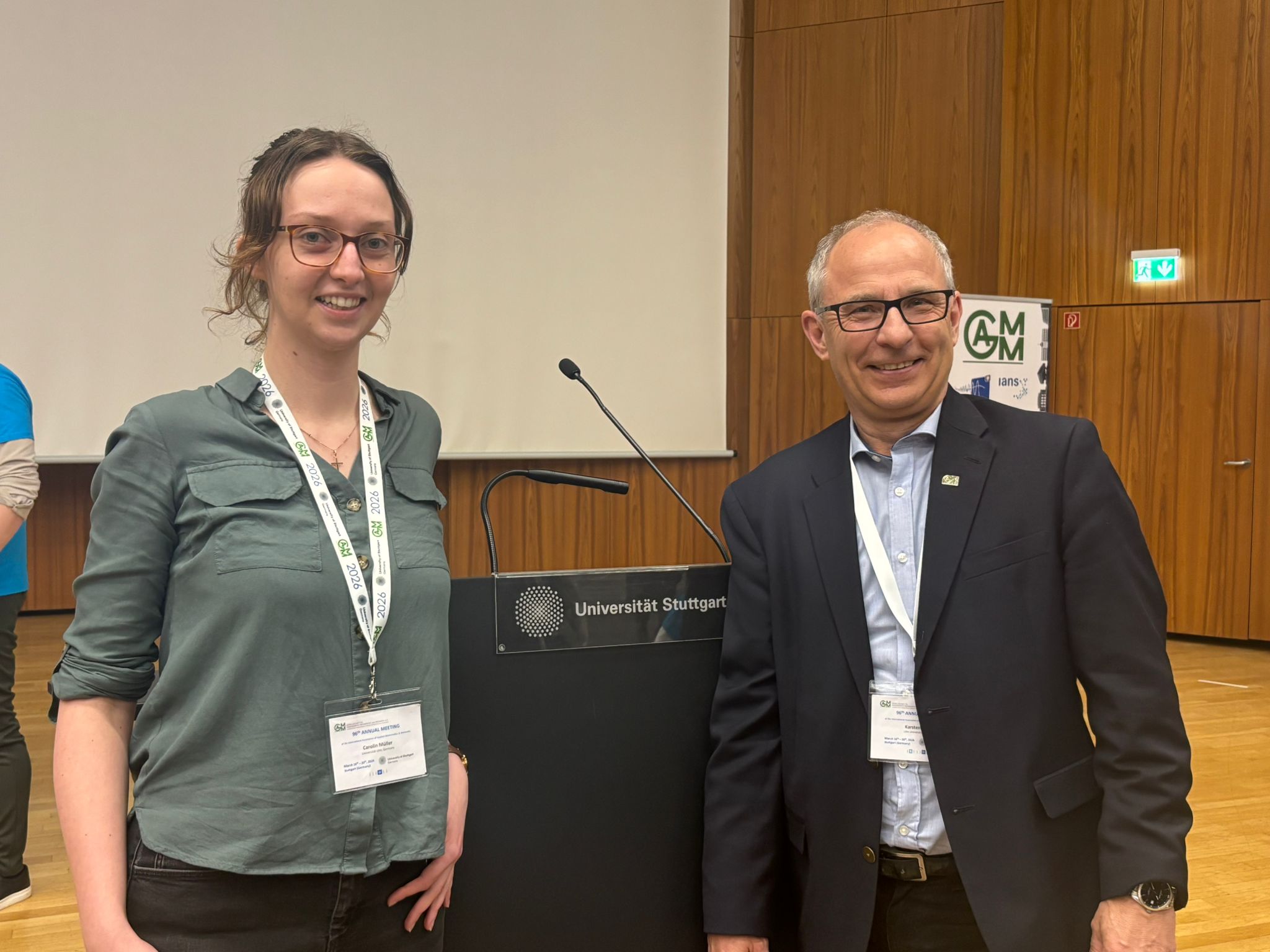 A special highlight of the meeting was that Carolin Müller, representing our student chapter, together with Prof. Karsten Urban, took part in the handover for the next annual meeting. On this occasion, the key details of the GAMM Annual Meeting 2027 in Ulm were presented. The upcoming meeting will be organized jointly with the German Mathematical Society (DMV) and will take place at Ulm University and Ulm University of Applied Sciences from March 8 to March 12, 2027.